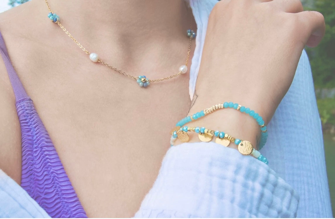 Wir raten deinen Schmuck vor Aktivitäten wie Duschen, Schwimmen, Sport und Hausarbeit auszuziehen, da der Kontakt mit Wasser und Reibung Verfärbungen verursachen kann.